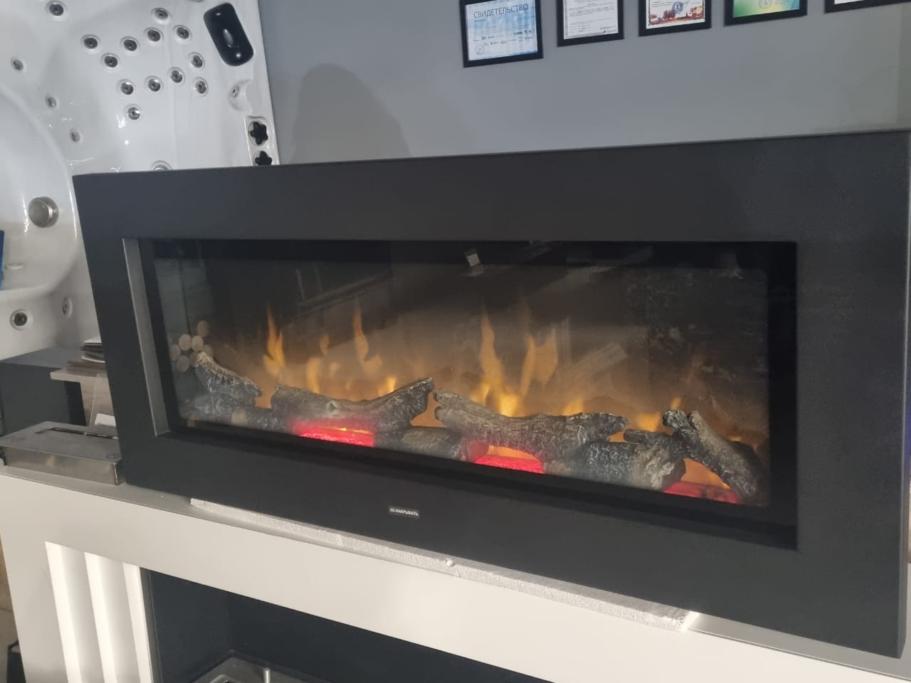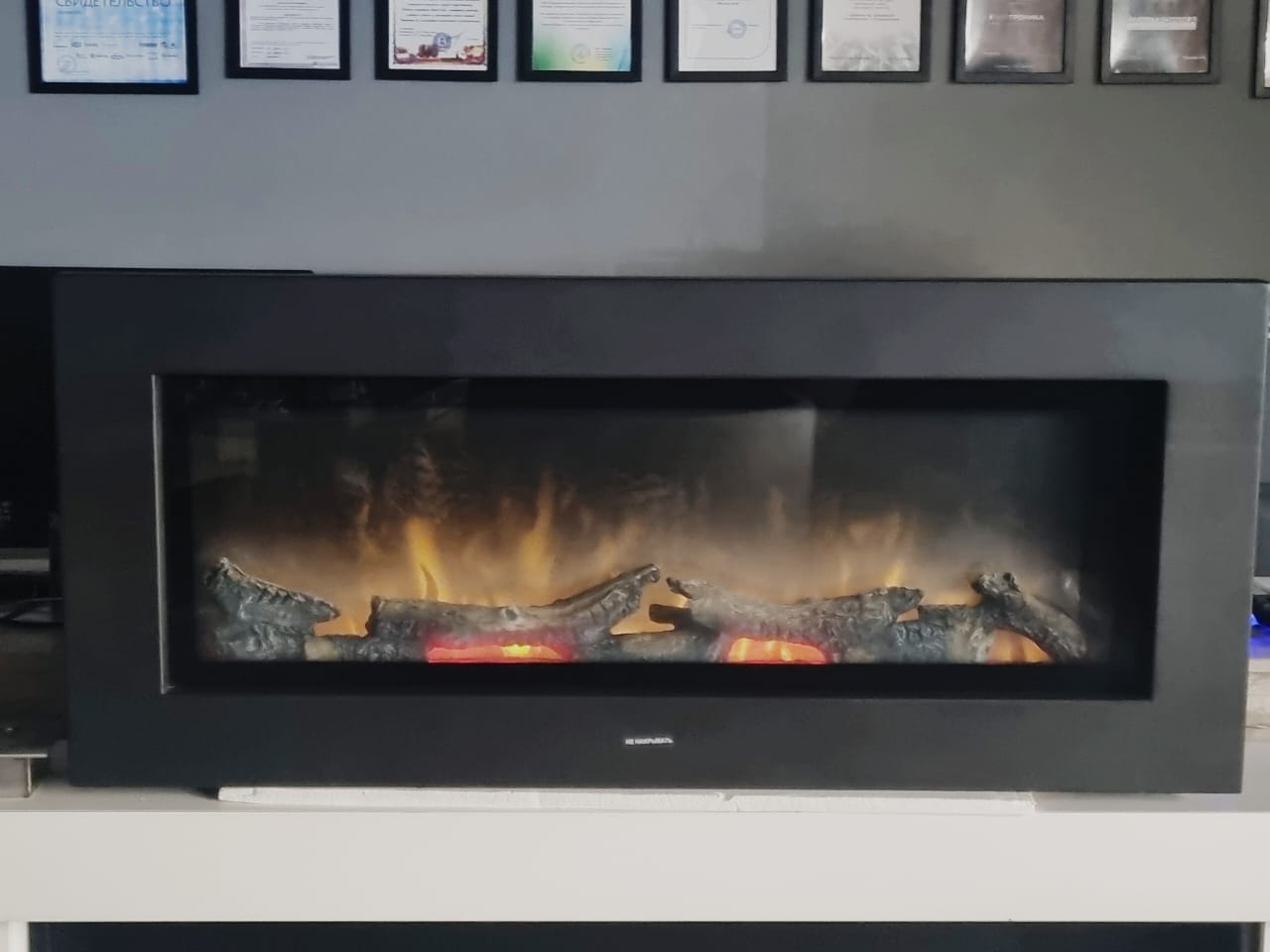 Дрова, находящиеся в очаге, создают эффект мерцания за счет встроенных в них светодиодов.