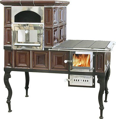 Эксклюзивная модель отопительно варочной печи произведена известной чешской компанией АВХ, производящей кафельные и варочные печи, начиная с 1993 года. Предлагаемая модель варочной печи изготовлена из высокопрочной листовой стали огнеупорных сортов и облицована керамической плиткой, цвет которой (зеленый или коричневый) можно выбрать при покупке. В состав модели входит топка с плоским прямоугольным окном из термооустойчивой стеклокерамики (до 700 градусов Цельсия), большой духовой шкаф, открытая теплая полочка арочного типа и варочная поверхность, обрамленная защитным металлическим поручнем. В качестве каминного топлива рекомендованы сухие дрова. Модель имеет оригинальный дизайн и, помимо своих высоких отопительных и варочных характеристик, способна украсить любой интерьер.