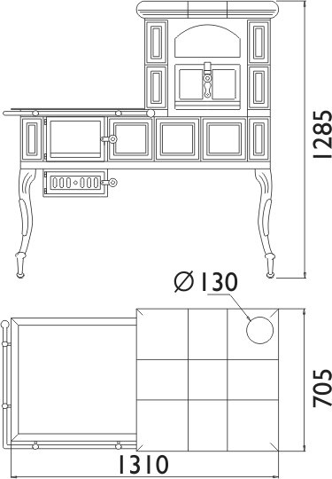 - Диаметр дымохода, (мм) 130