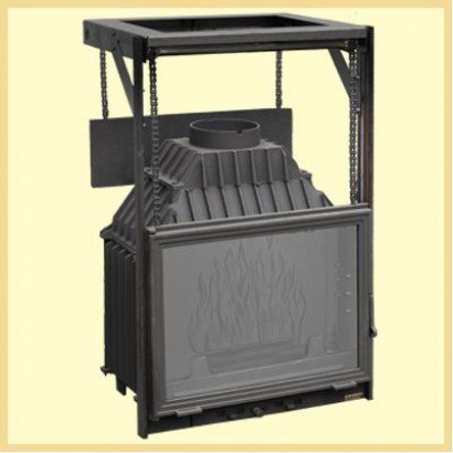 - подъемным механизмом дверцы, который плотно и бесшумно работает, надежно защищая пространство вокруг топки от углей и искр;