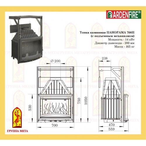 Группа МЕТА представляет каминные топки ARDENFIRE изготовленные из чугуна. Топки собираются на предприятии Группы МЕТА из комплектующих и деталей разработанных и произведённых во Франции. Для уплотнения разъёмных элементов топки используются термостойкий шнур. Все изделия ARDENFIRE укомплектованы специальными термостойкими стёклами (стеклокерамикой Neoceram N-O производства Японии).