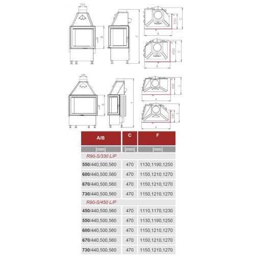 Каминная топка Kobok Corner 600 R90-S/330 L/P