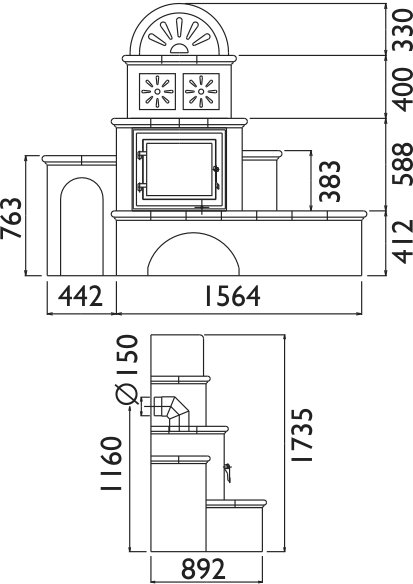 - Диаметр дымохода, (мм) 150