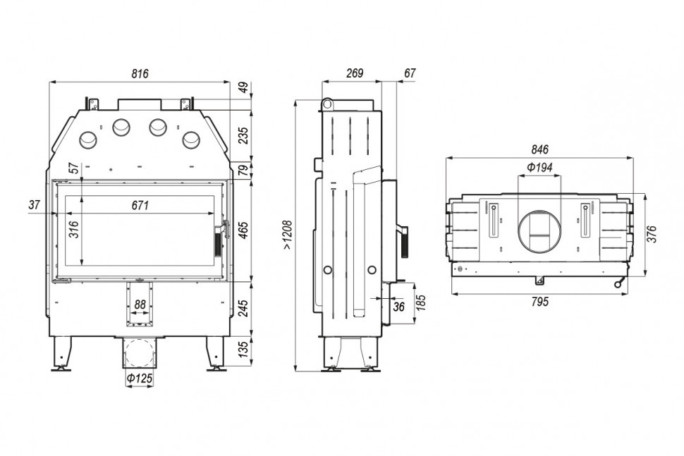 - Габаритные размеры ШxГxВ, (мм): 816x376x1208