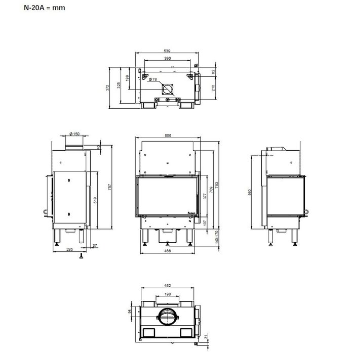 Каминная топка Nordpeis N-21A правая, черная