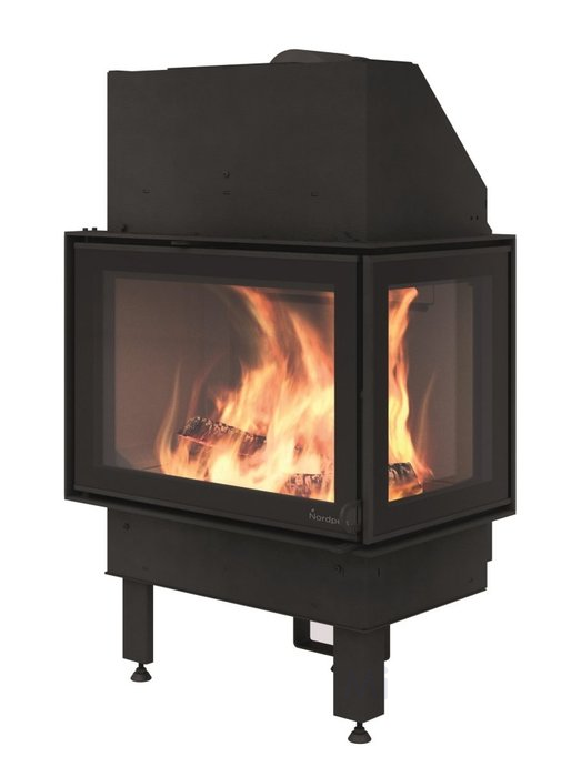 Дровяная каминная топка Nordpeis N-21A правая, черная выполнена в современном стиле и имеет двухстороннее остекление, что удобно для установки в угол комнаты. Топка изготавливается из высококачественной стали, камера сгорания отделана современным керамическим материалом - термотт. Прибор оснащен выемным зольником для удобства очистки.
