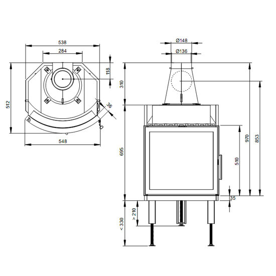 - Диаметр дымохода, (мм) 150
